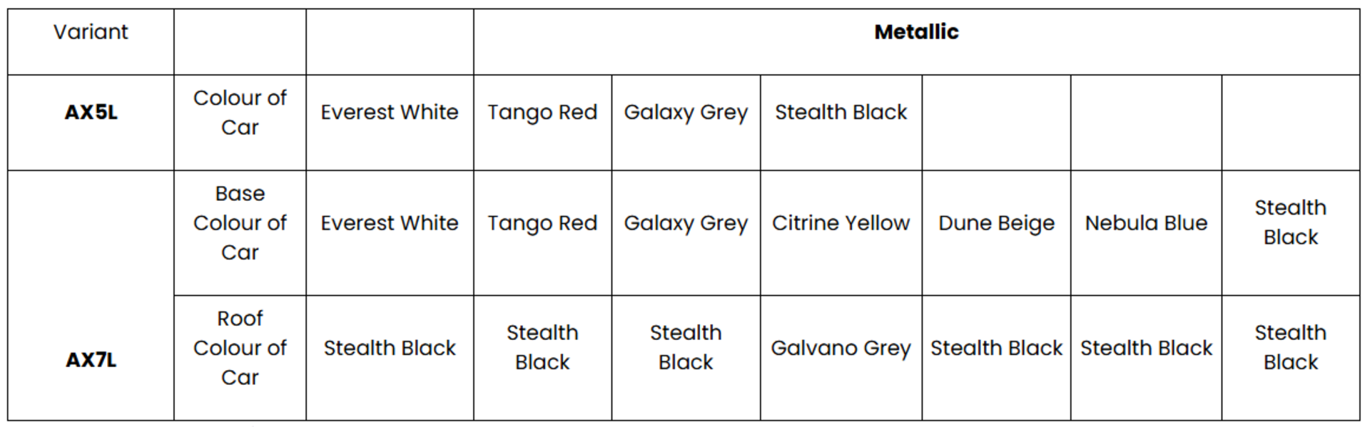 - Stealth Black with Galvano Grey roof colour